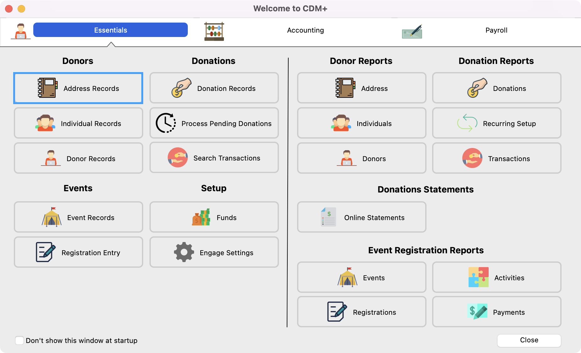 From the Welcome to CDM+ Window, under Donors click on Address Records.