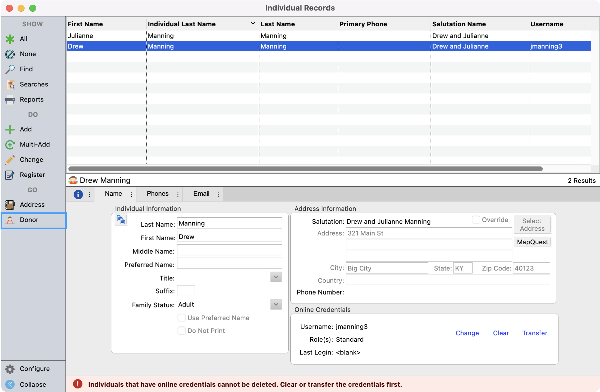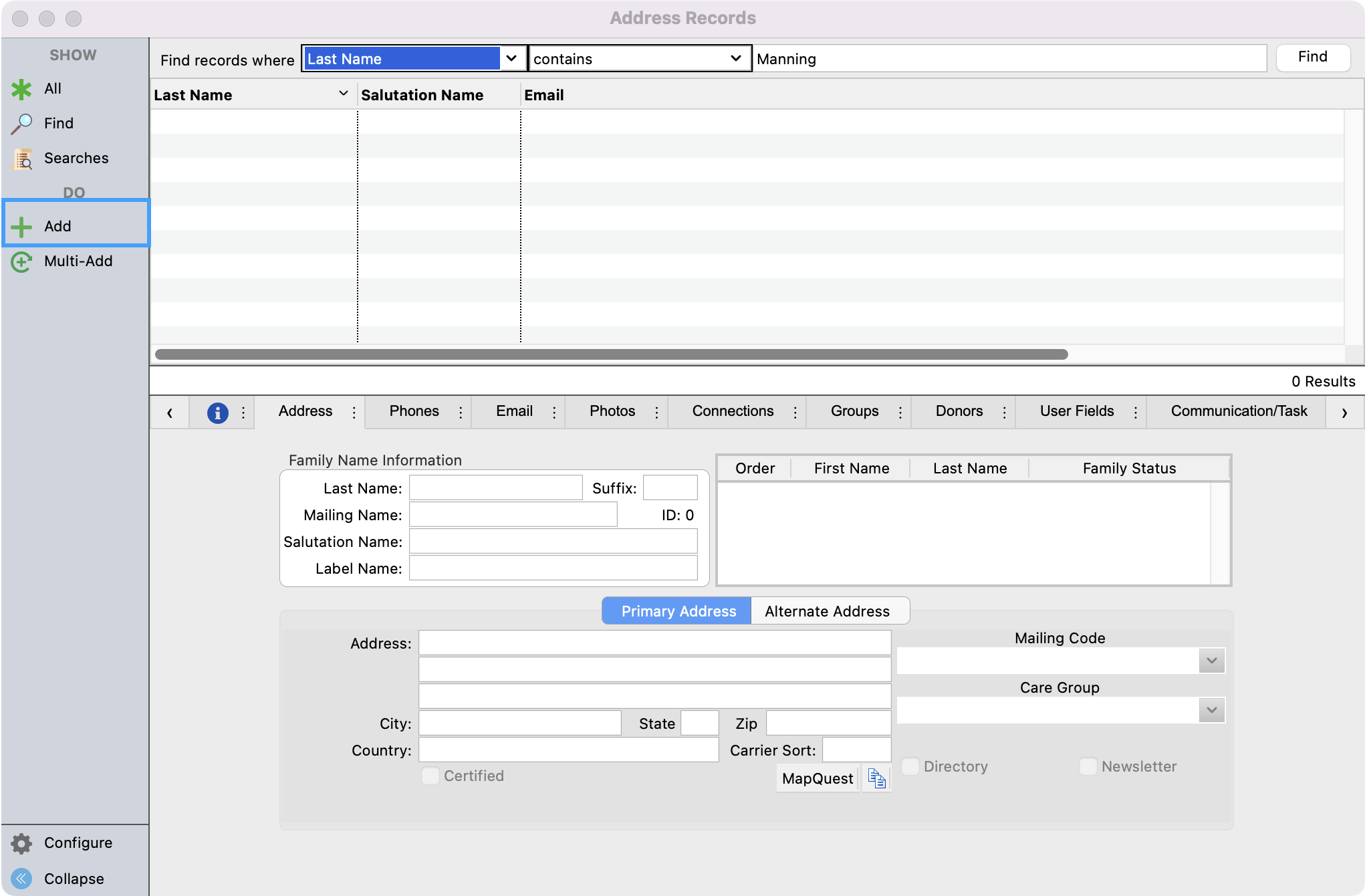 If you just need to add one or two new donors, you can add them directly in CDM+. To add a new donor you will first create an Address Record.