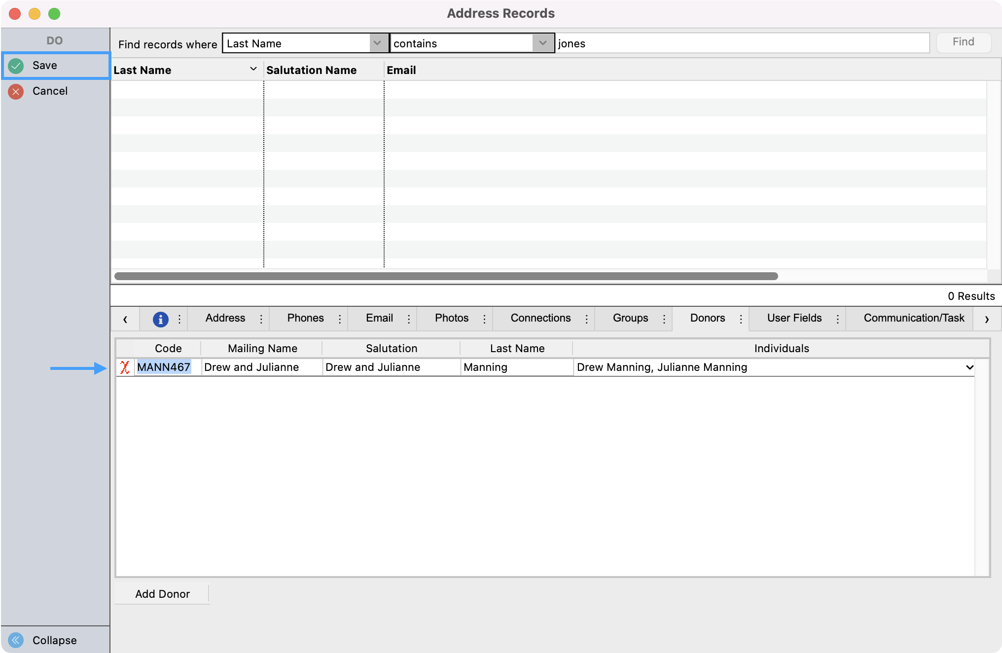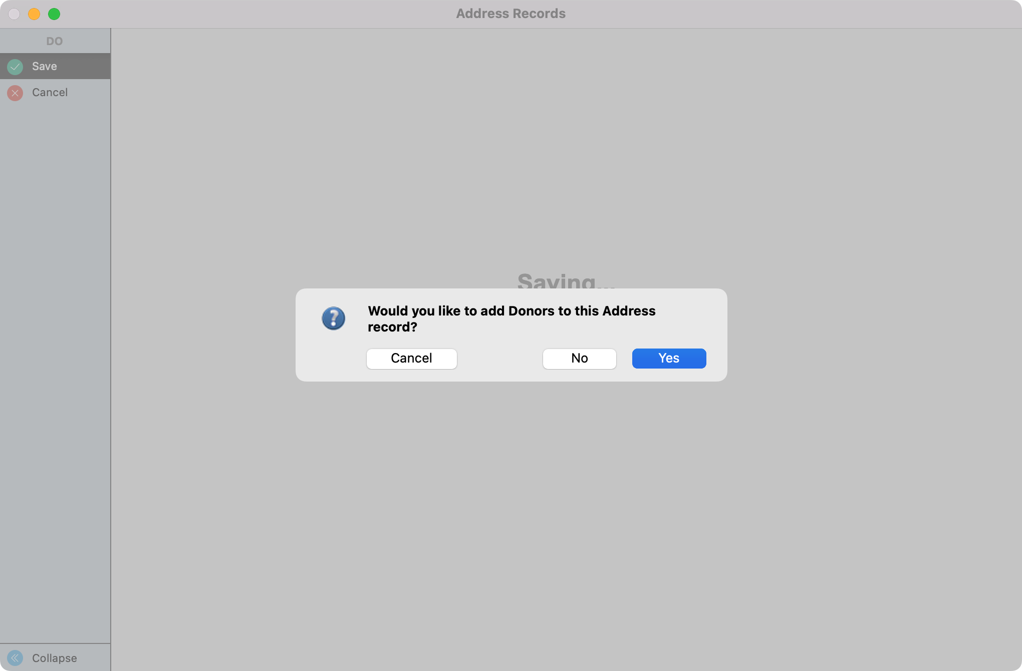 You will then see a pop-up that asks you if you would like to add Donors to this Address record. Click on Yes.