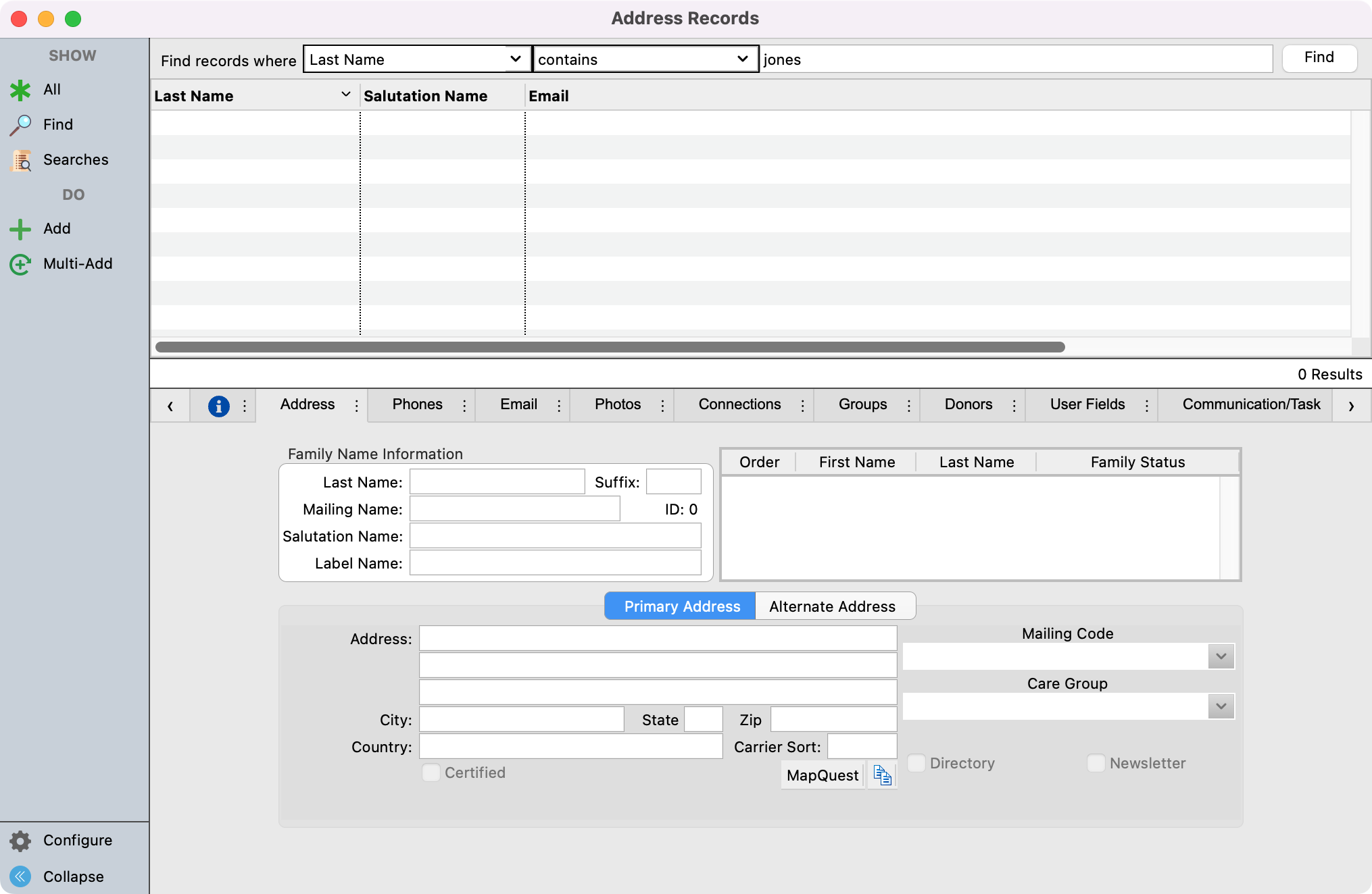 To configure your Address Records window from the Welcome to CDM+ window, click on Address Records.