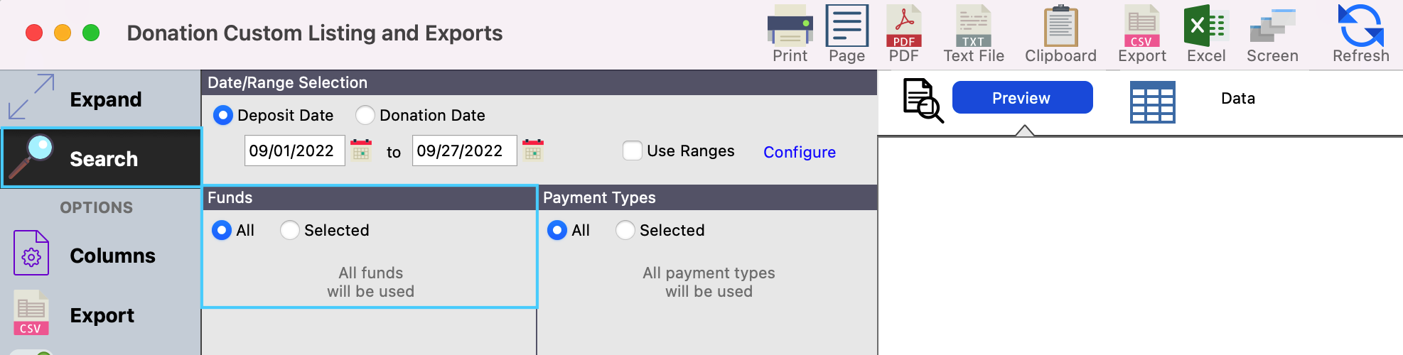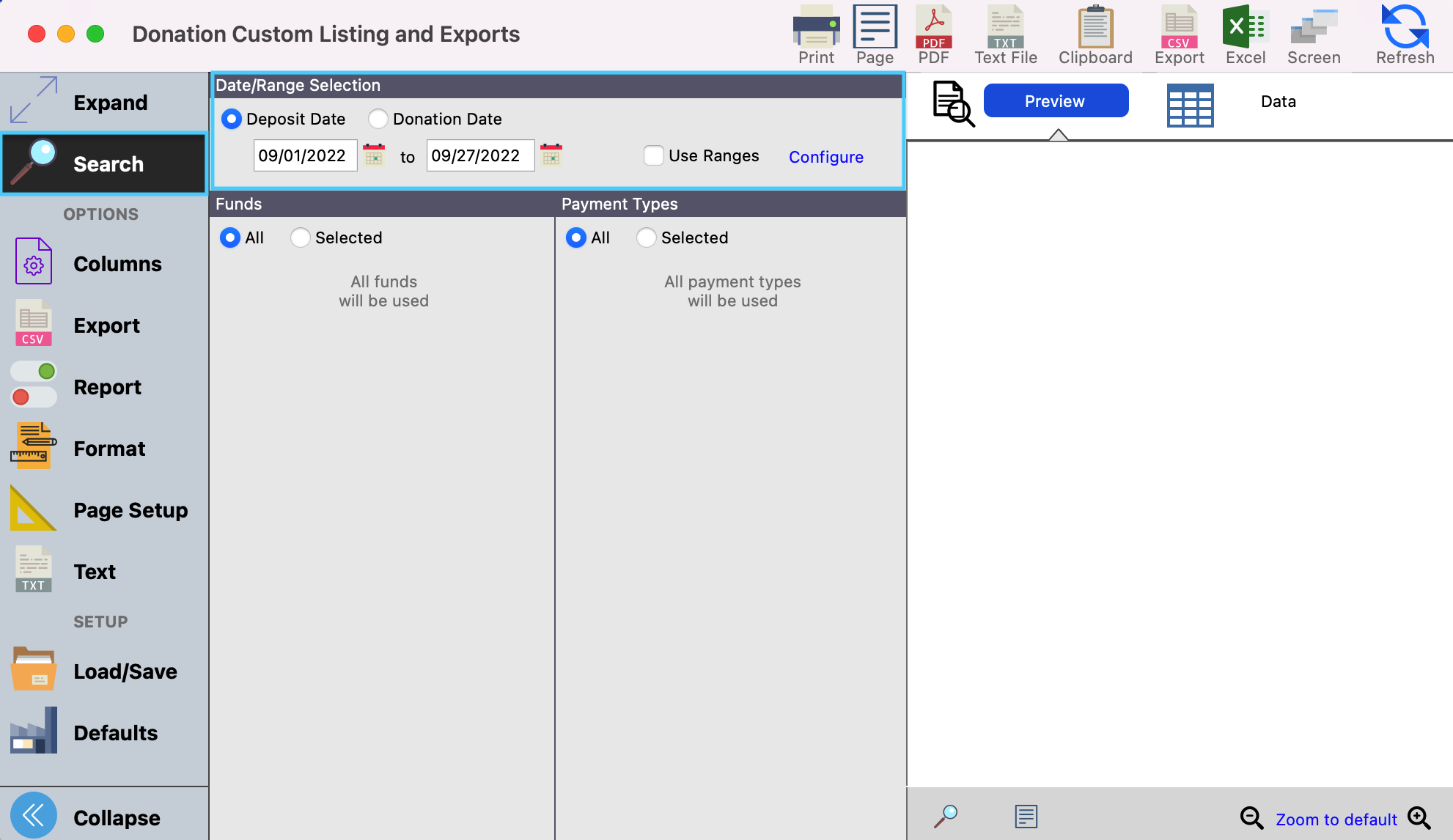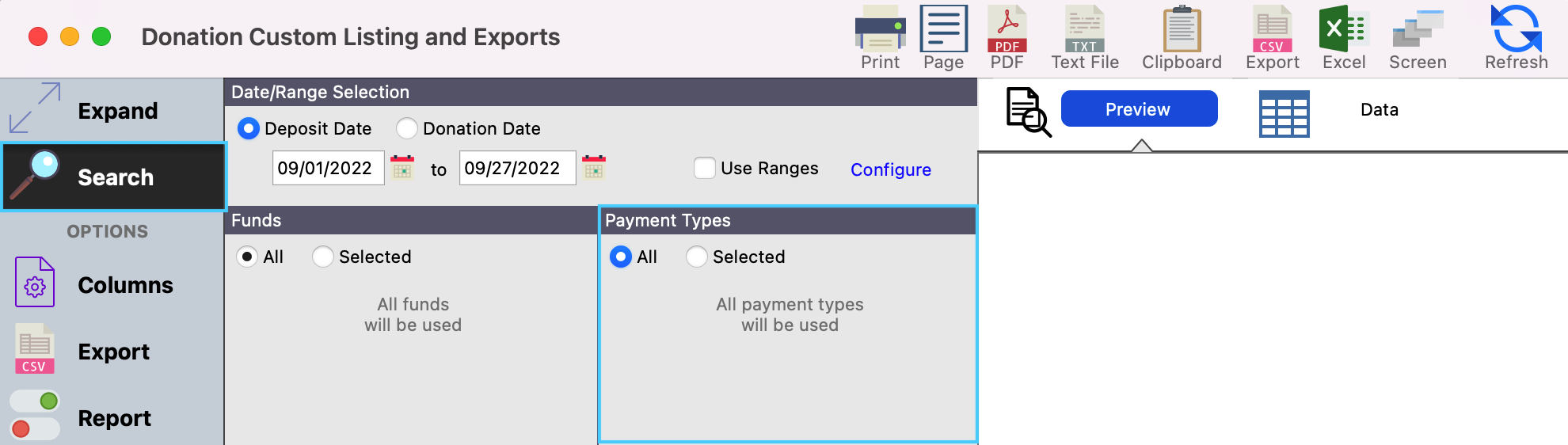 Depending on the information you are seeking you will search by either Deposit Date (the date the donations were deposited into your bank account) or Donation Date (the date the donation was made).