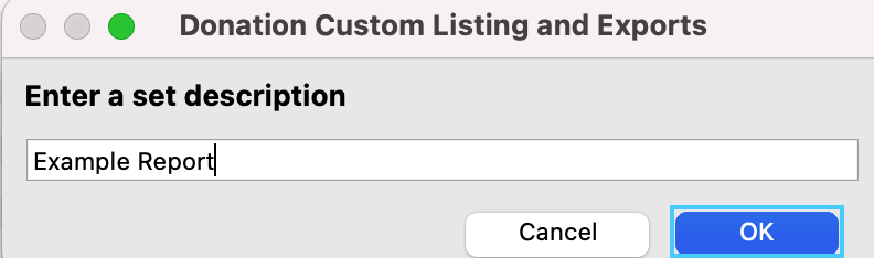 8. Enter in a name for your custom report and click on Ok.