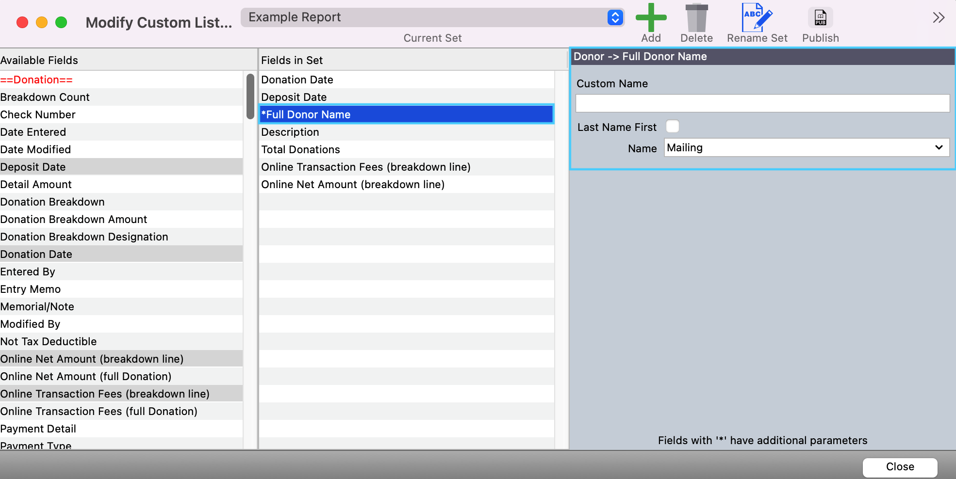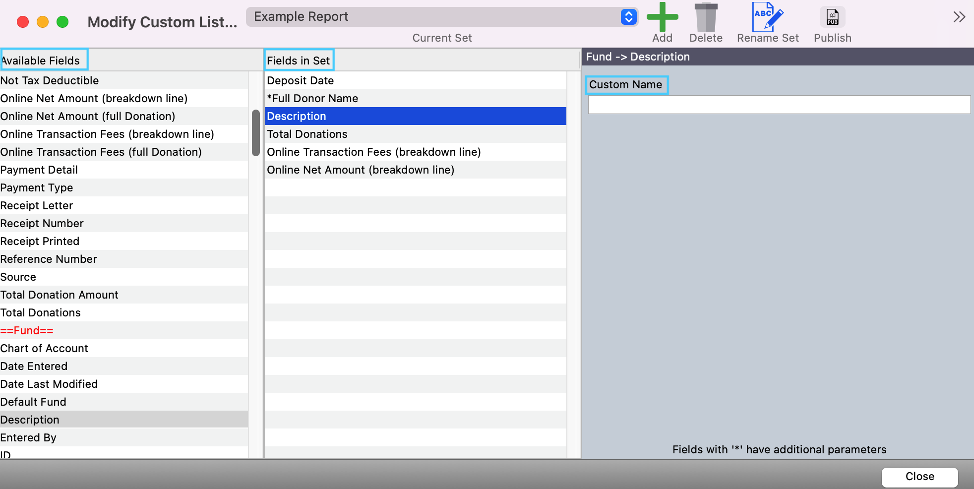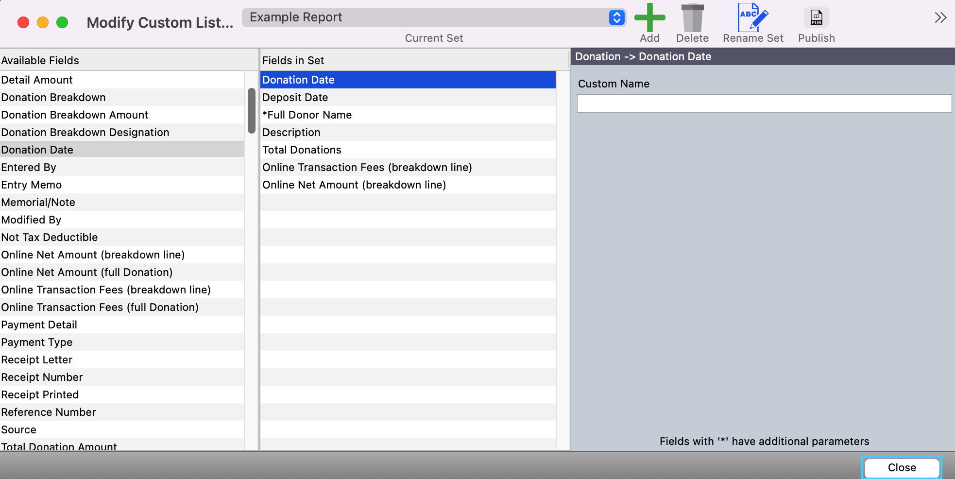 10. One you have decided on all the fields you need in your set, click on Close.