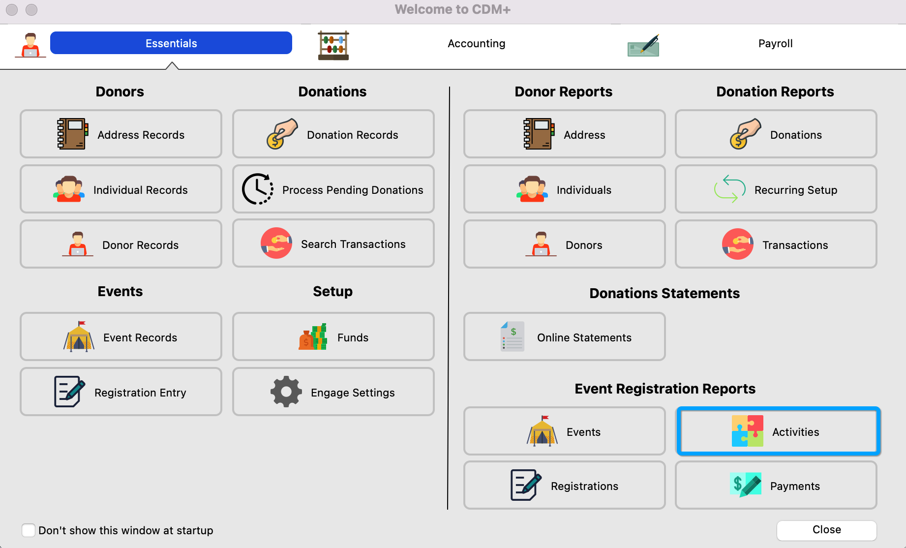 Click Activities, under Event Registration Reports.