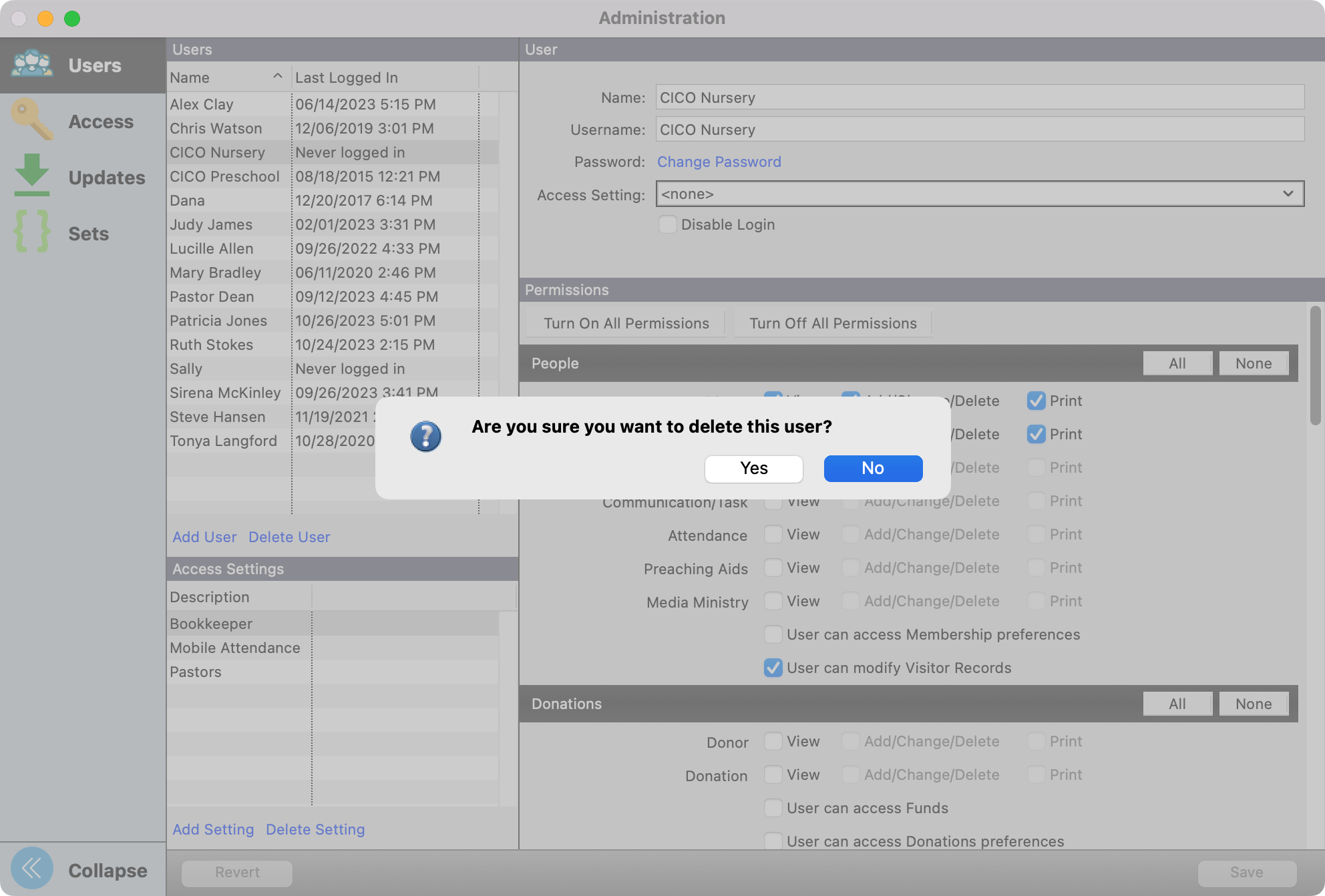 You'll see a pop-up message asking to confirm if you want to delete this user, click Yes.