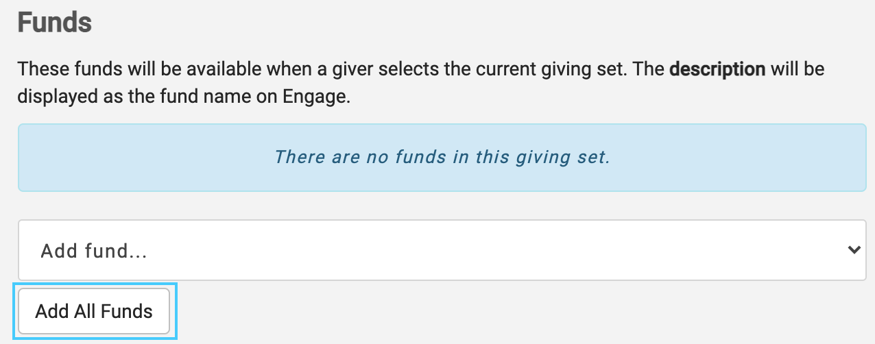 - On the same page, scroll down to where you see Funds. You can choose to add all the Funds in your Fund List by clicking on the Add All Funds button.