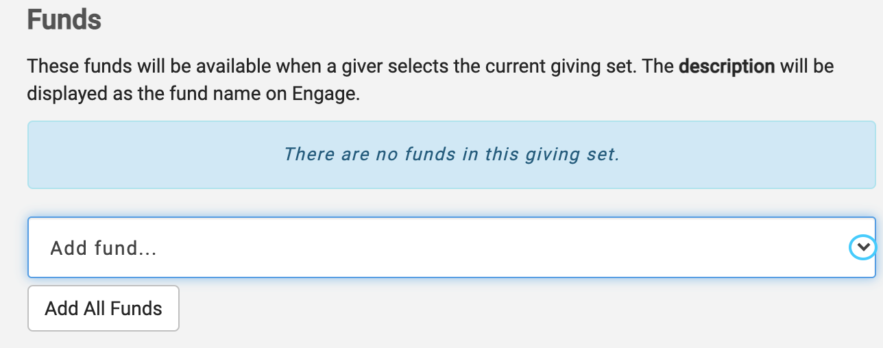Or you can click on the drop-down arrow next to the Add Fund field to add only the funds that you wish to appear on your link.
