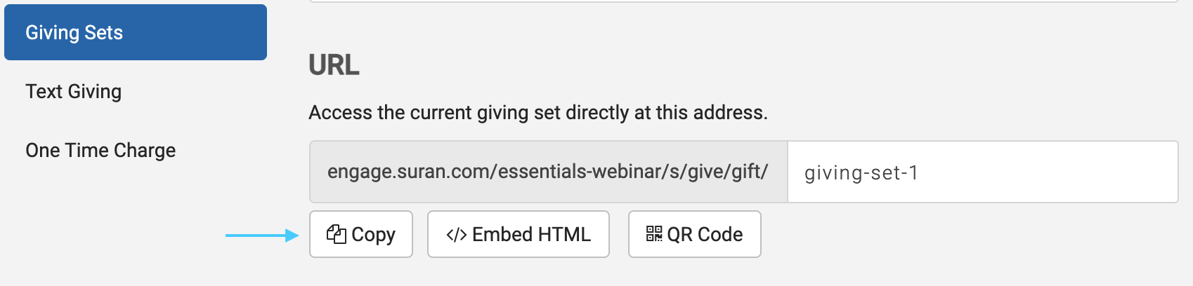 - You can then scroll back up to the URL section on the page and decide if you want to copy your link, embed your link, or download the QR code to send this link to your donors.