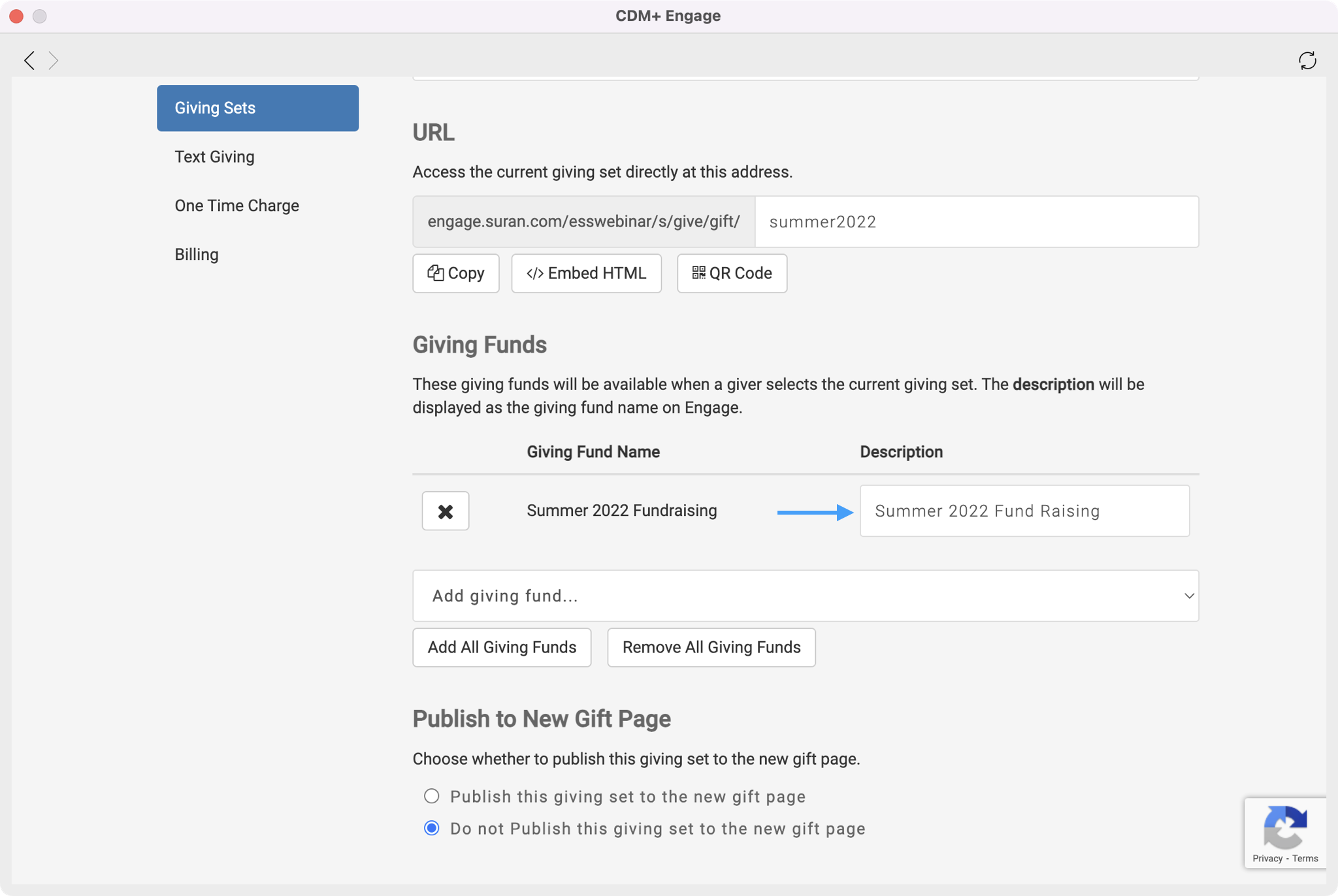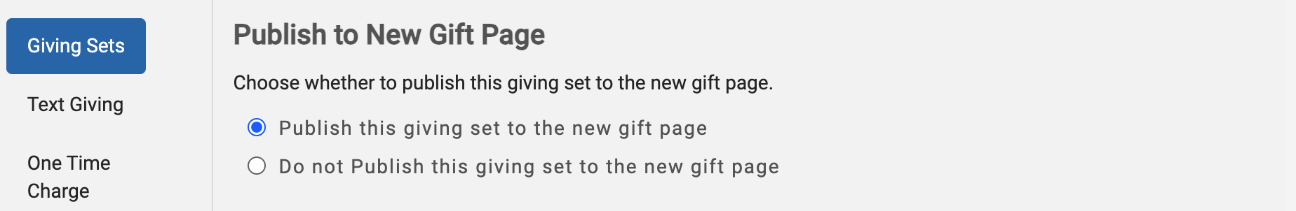 Next, you can edit your choice on if you want to publish this set to the New Gift Page. The New Gift Page is a separate link that you can use which list all of the sets you’ve published to this page.