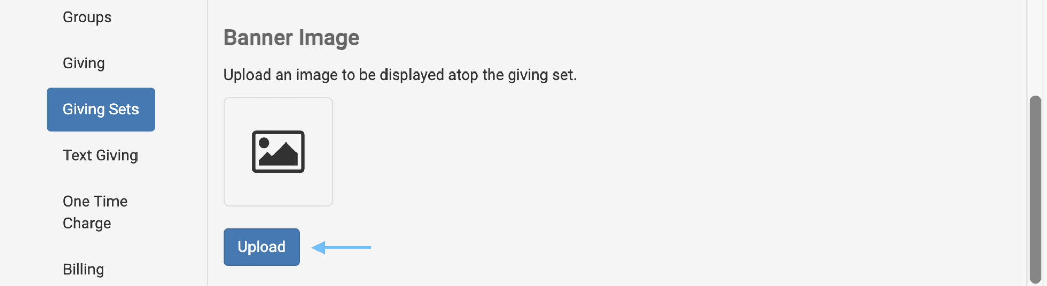Next, you can customize this giving set by adding a custom Banner Image. Click Upload and select a file you want to use.