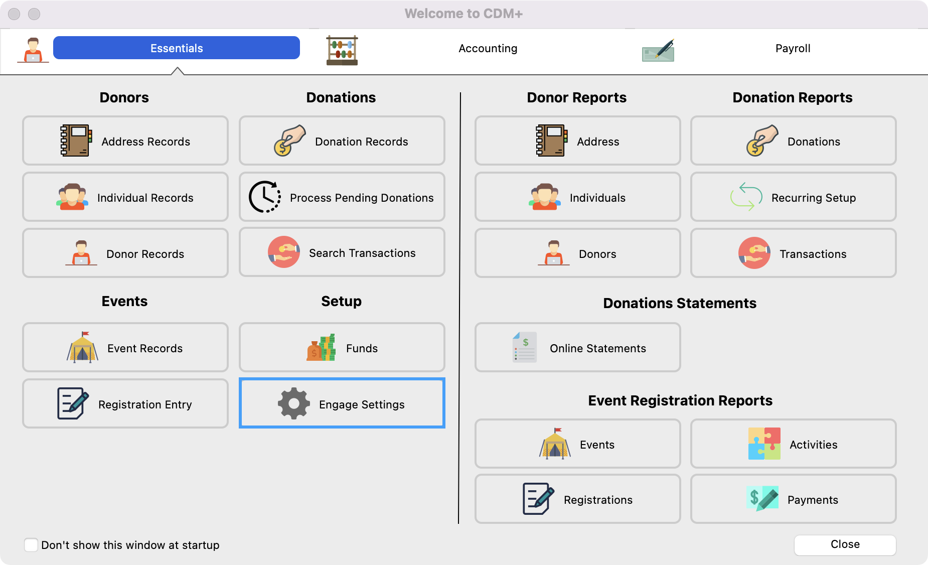 From the Welcome to CDM+ window, click on Engage Settings.
