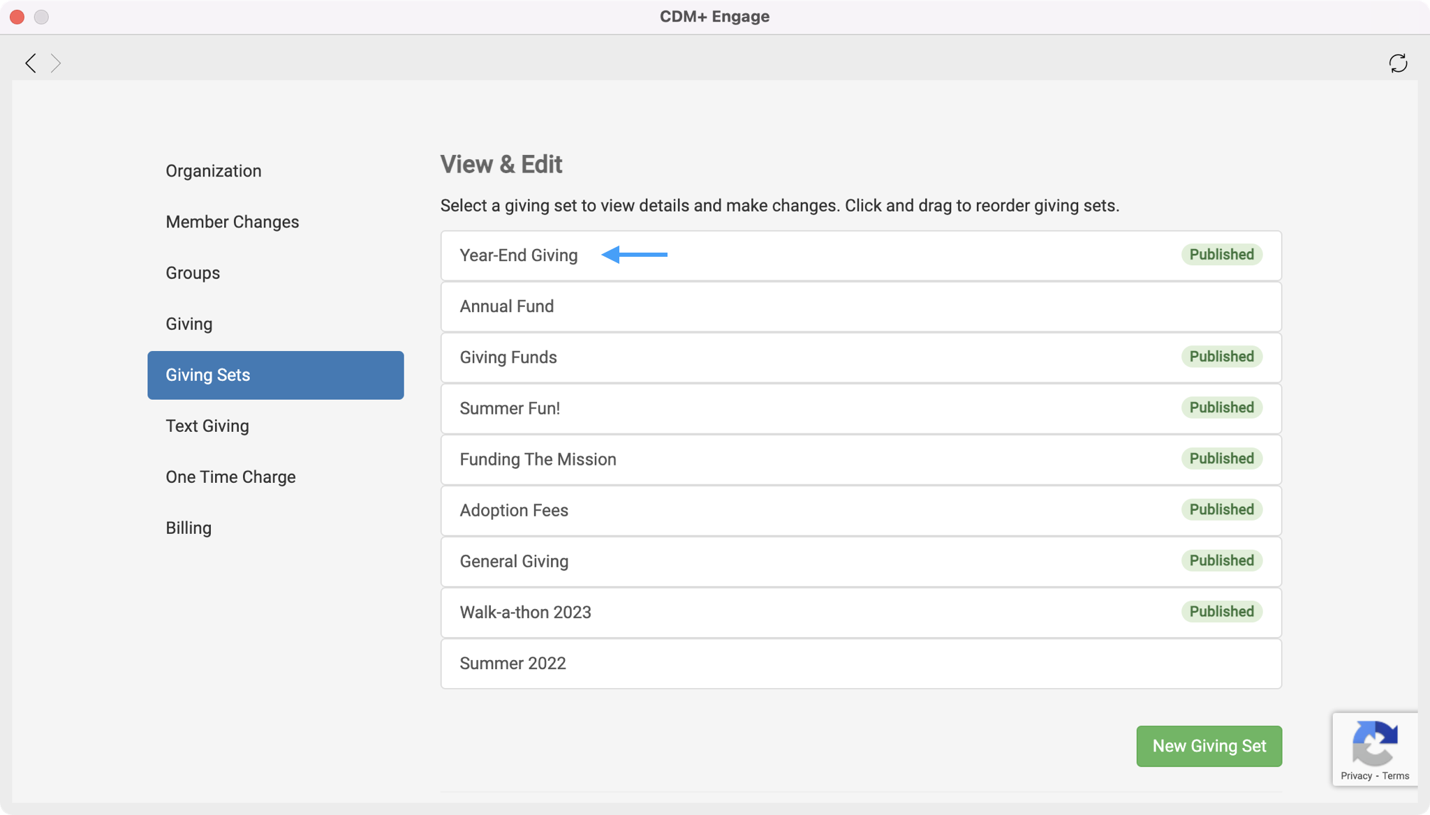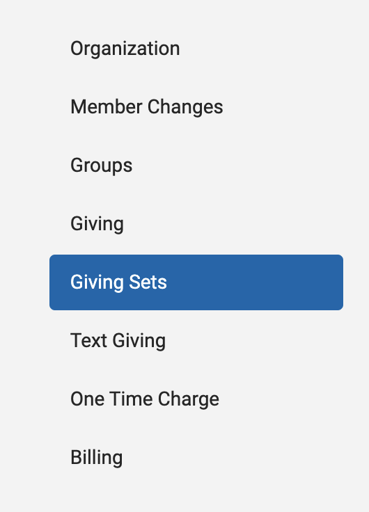 Next, click on Giving Sets from the left-hand side menu.