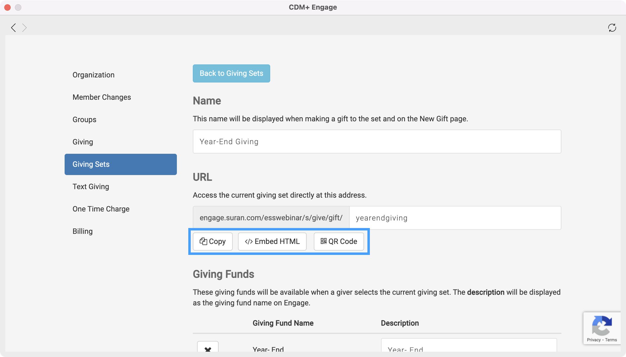 How to find your Giving Set's URL, QR code, and Embed Script