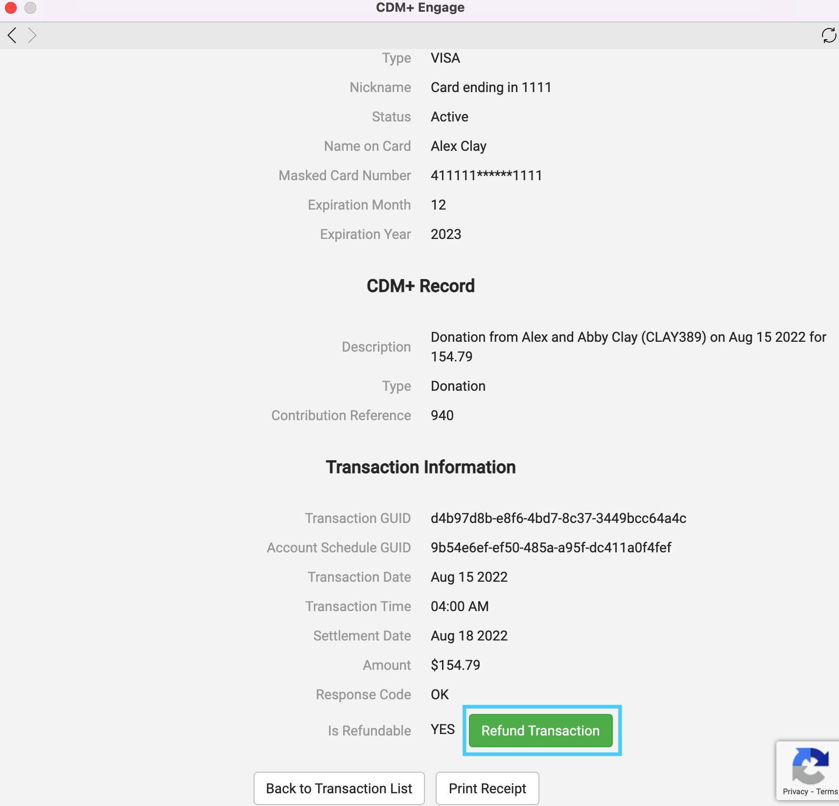 - On the next page, scroll down to the bottom and click on Refund Transaction.