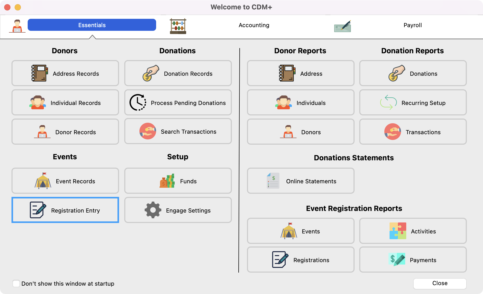From the Welcome to CDM+ window, click on Registration Entry.