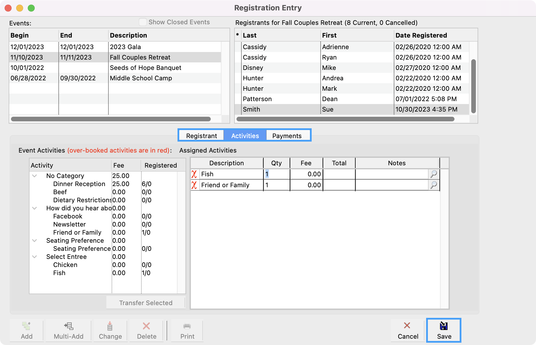 If an attendee needs to make a change to their registration, you can modify their registration under Registration Entry.
