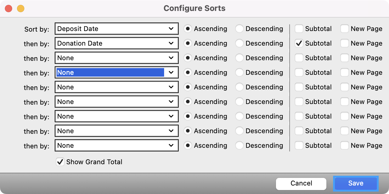 Next, you may want to click on Configure Sorts and Totals, to make sure your configuration still applies to the new fields you have chosen.