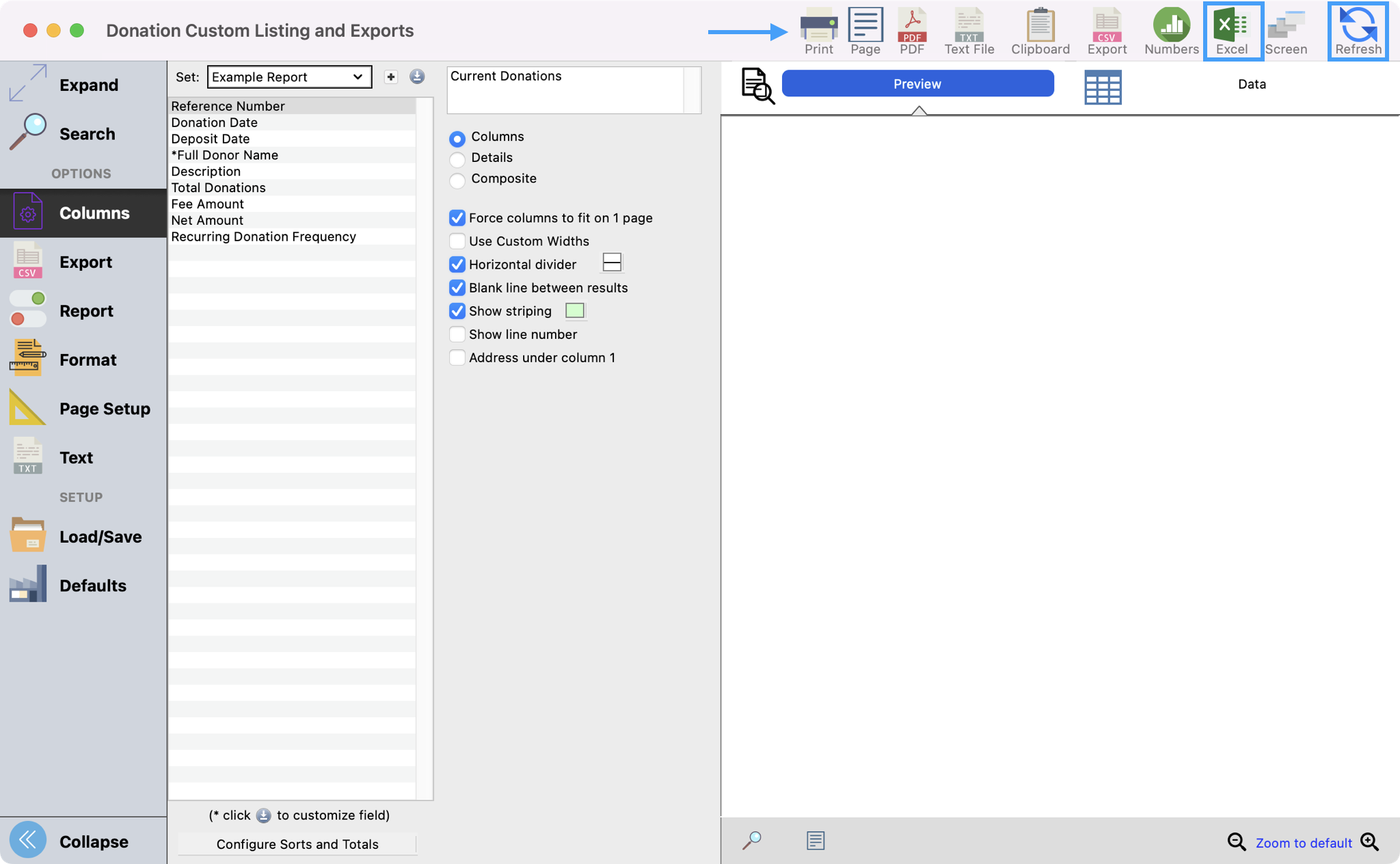 Lastly you can click on Refresh to see a preview of your report. You then can print or export the report as you wish.