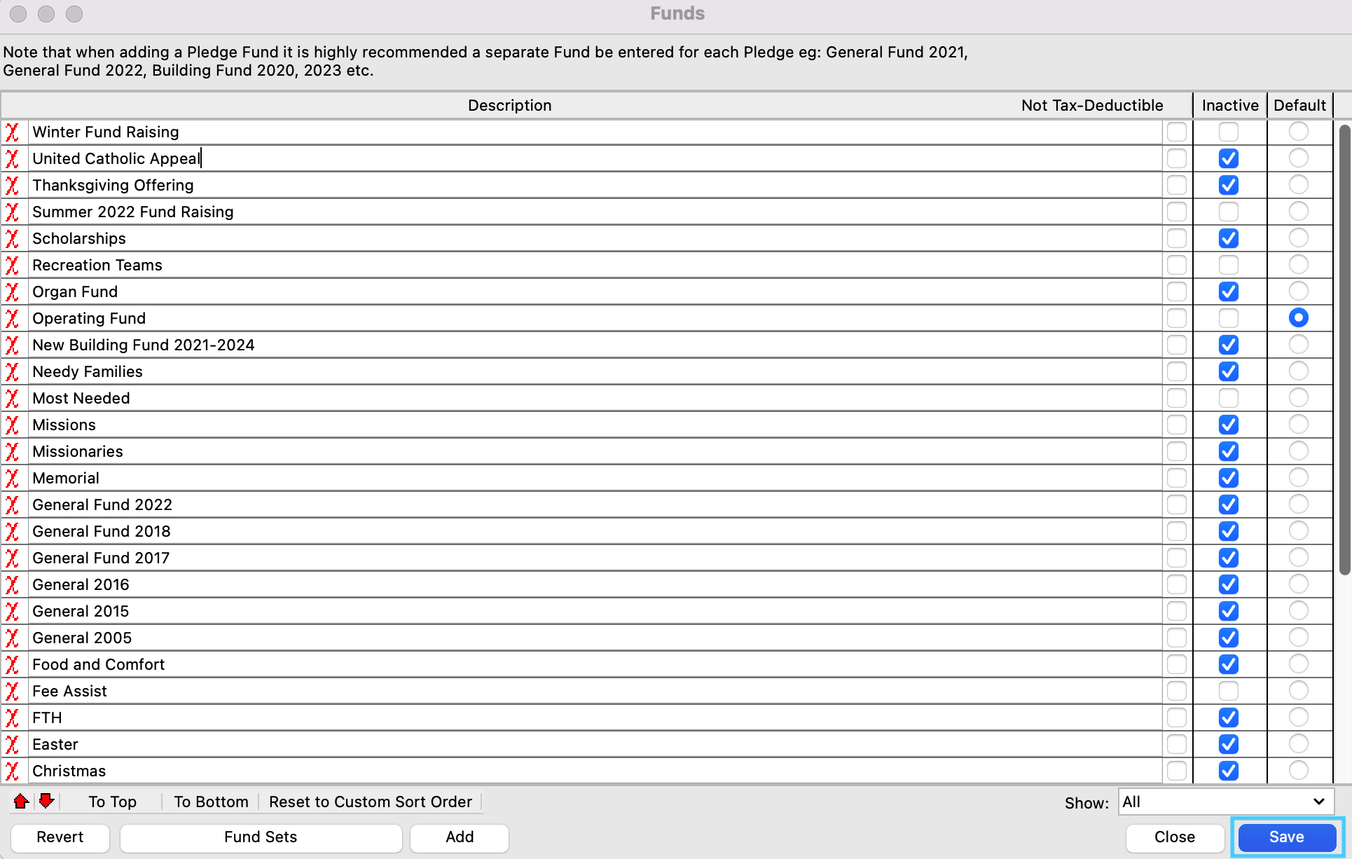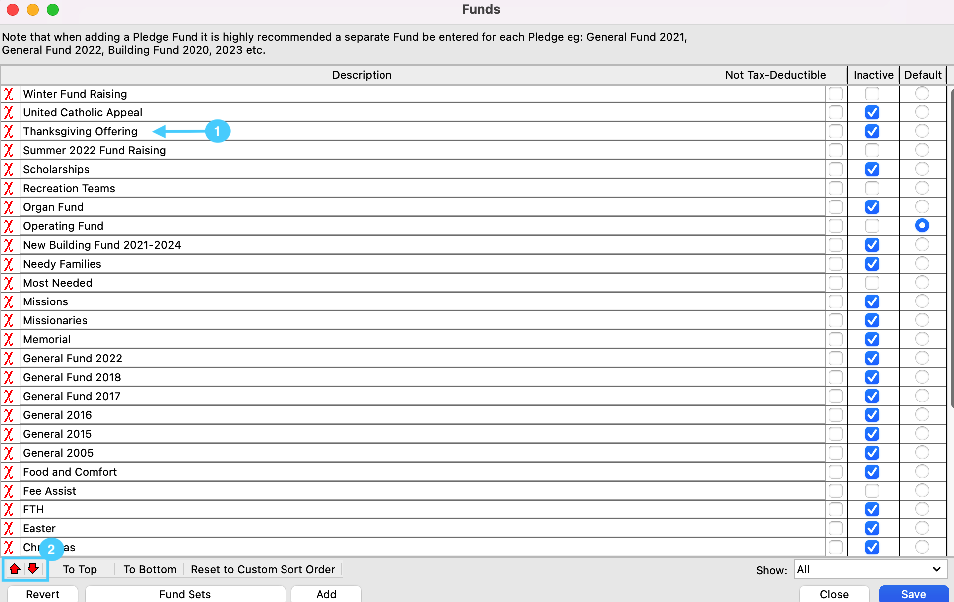 Then, you will see the funds arranged on your giving sets the way they were ordered in your Fund list.