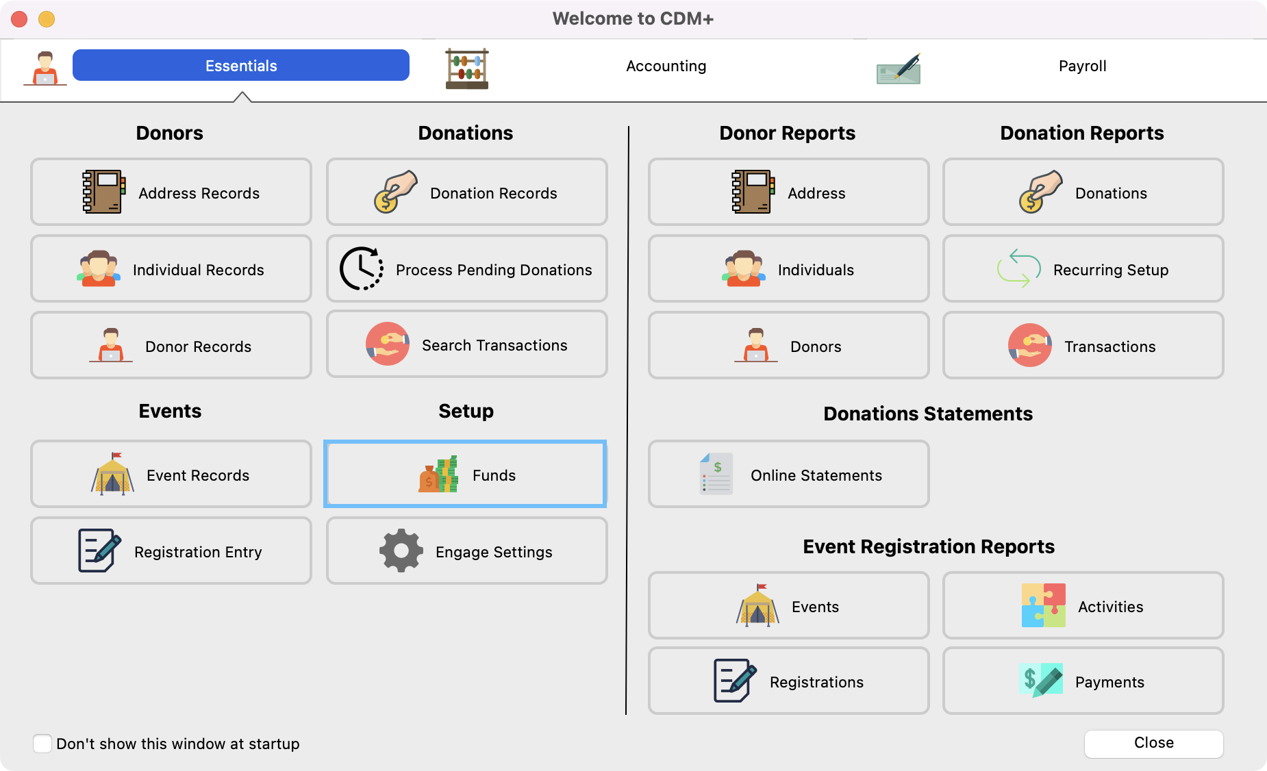 To manage or rearrange the order in which your funds appear, from the Welcome to CDM+ window, click on Funds.