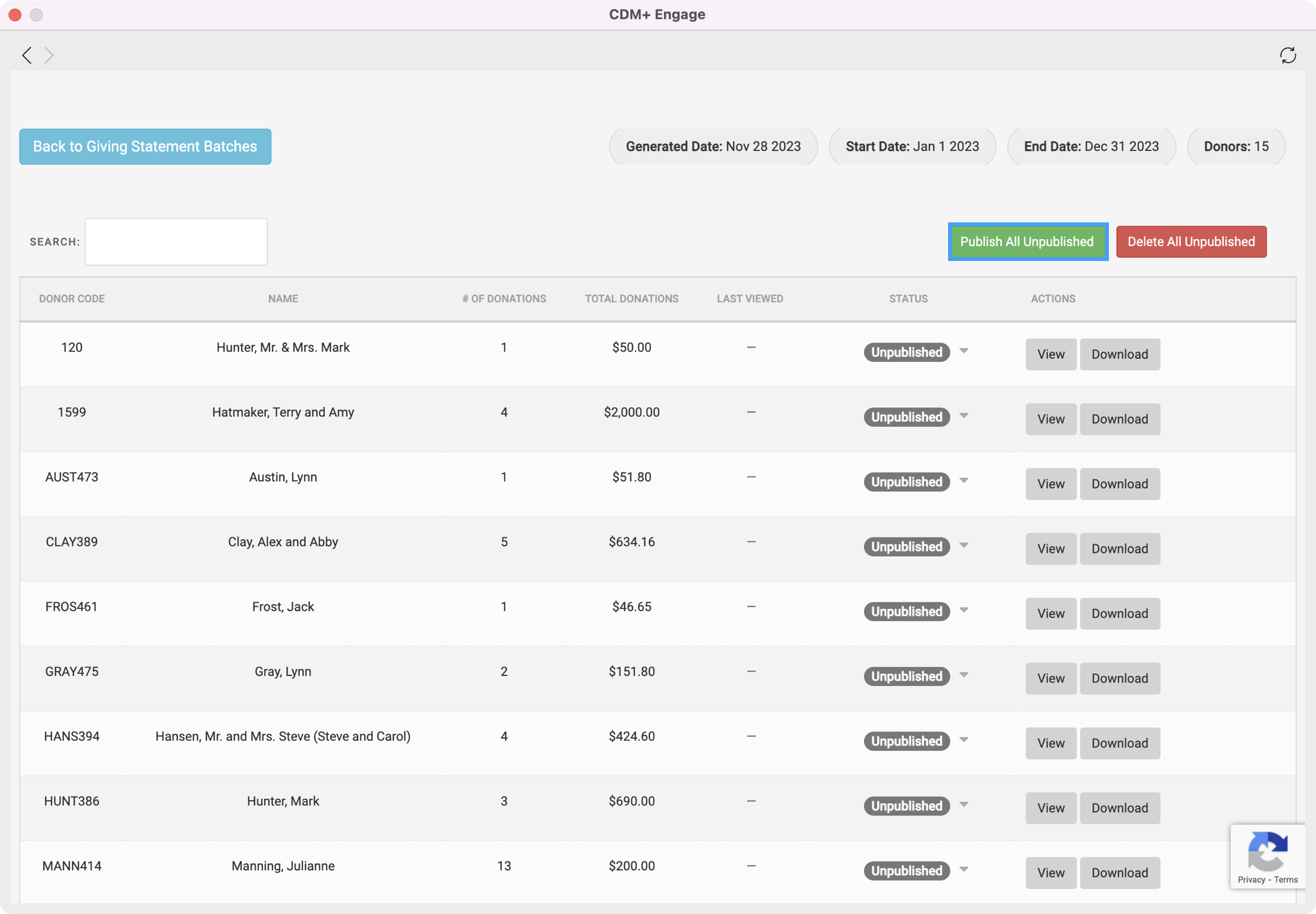 Then, click on Publish All Unpublished to make the statements visible to your donors again.