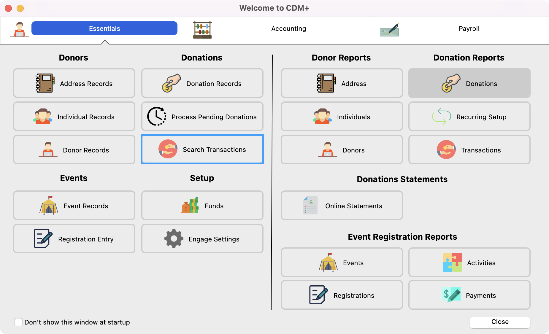 - From the Welcome to CDM+ window, click on Search Transactions.