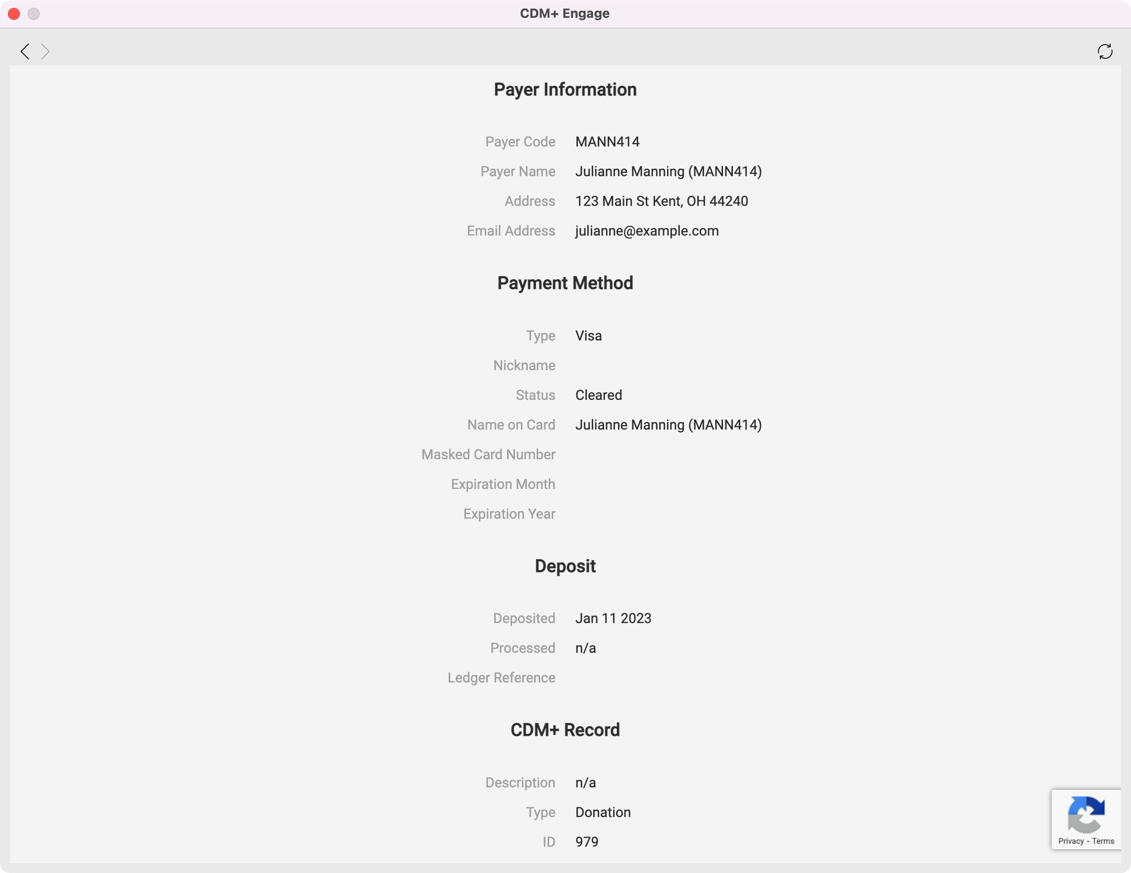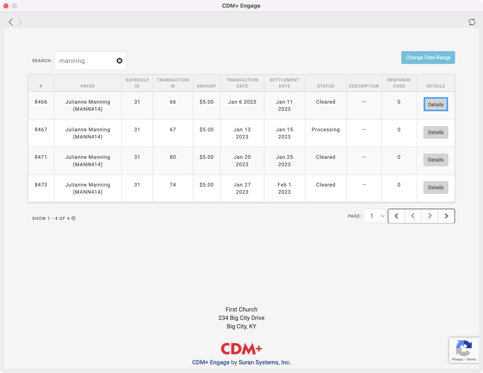 - If you need to see more details about the transaction click on Details to see more information about the donor including their contact information and payment method that was used.