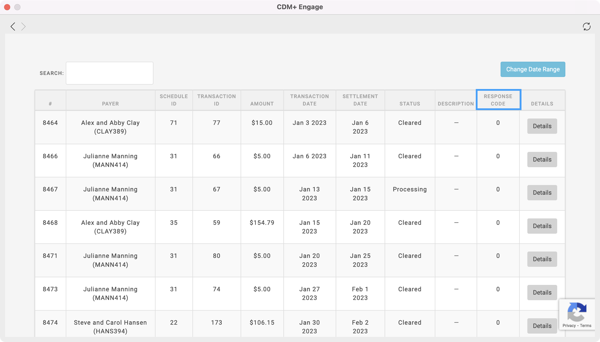 - If a transaction has failed, you will see the reason for the failure in the Response Code column. Please note that CDM+ nor Paragon declines or returns a transaction. The credit card or bank provider of the donor is the one who declines the transaction. The response we receive comes directly from the provider for why it failed.