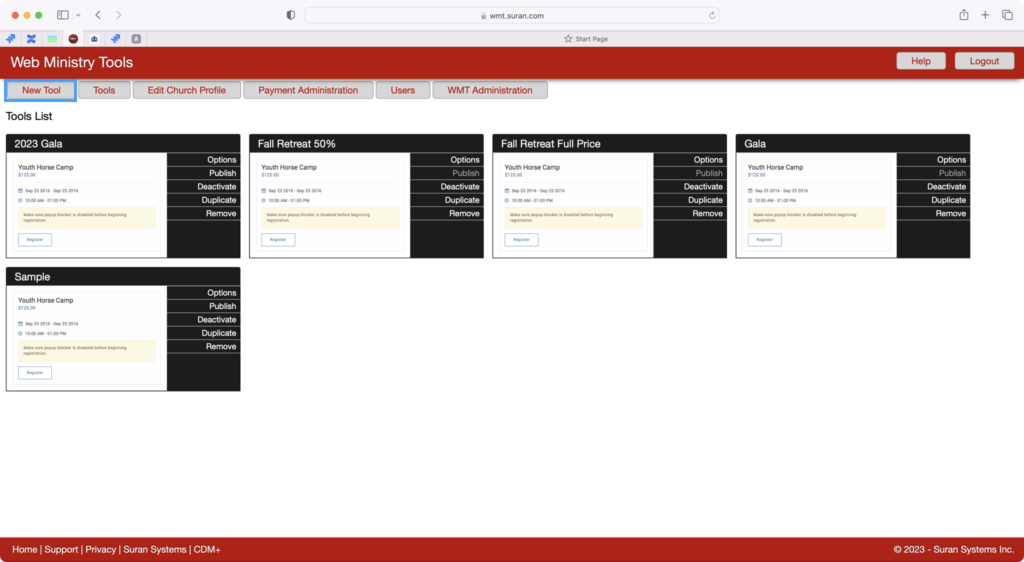Once you have a Web Ministry Tools account, you will login at www.wmt.suran.com .