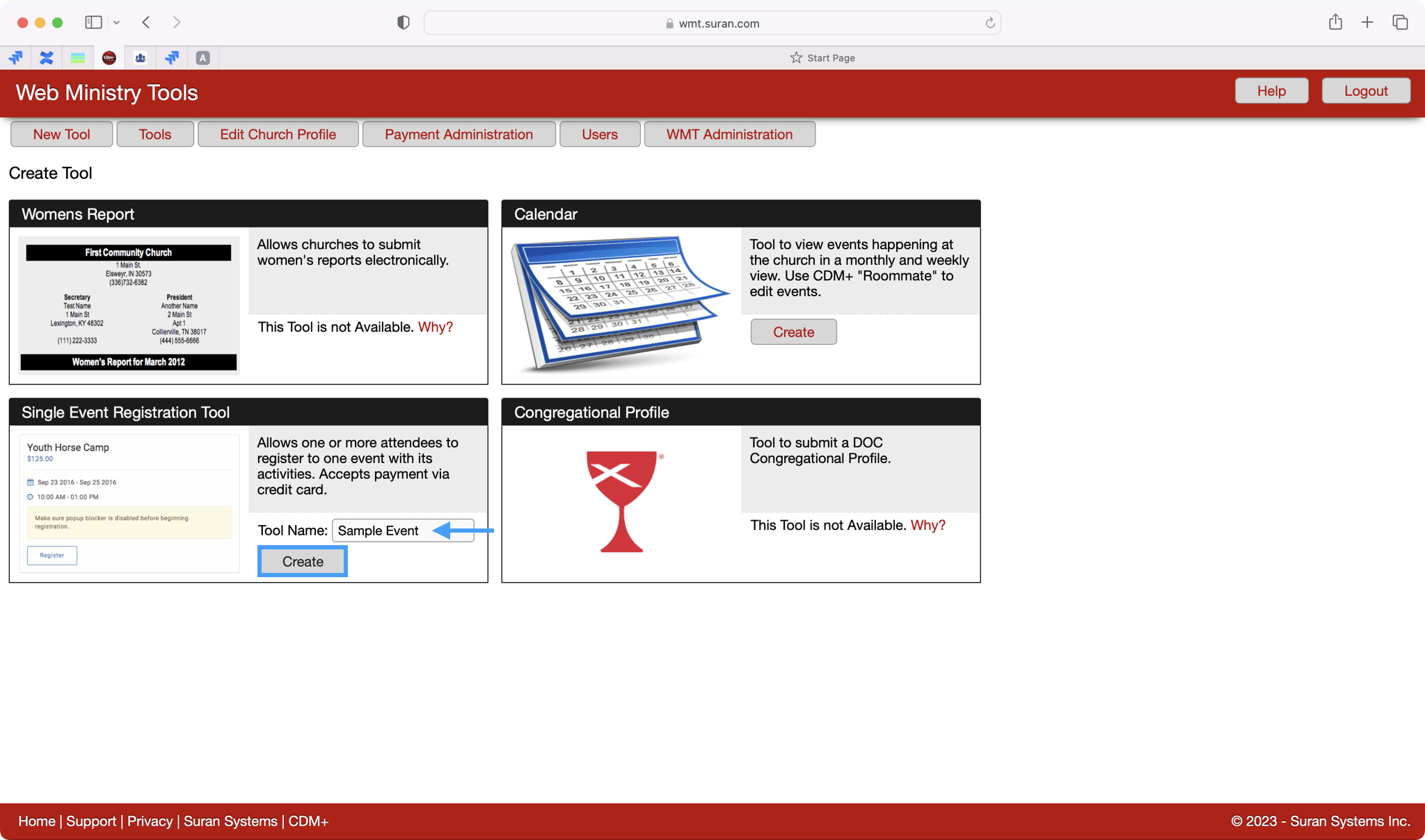 You will give your Tool a name, typically the name of your event, and then click on Create.