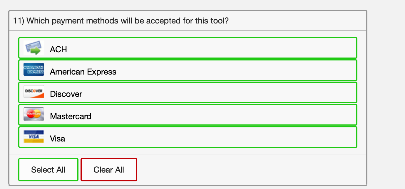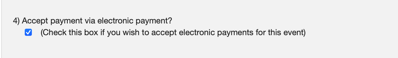 Next, if you want to accept payment via electronic payment, put a check in this box on Step 4. You'll have the option to select which forms or payment you wish to receive further down on this page.