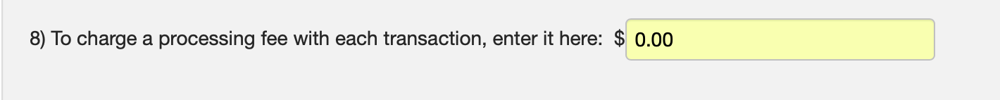 Step 8, allows you to be able to add a processing fee amount for this transaction. Please note that this is a blanket amount that is added to the total. For example, if you add a processing fee of $5.00, whether someone is registering one person or ten people at at time, they will still be charged just the one $5.00 additional processing fee.