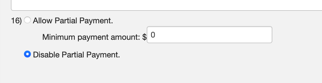 Lastly, you can decide if you want to allow for partial payments.