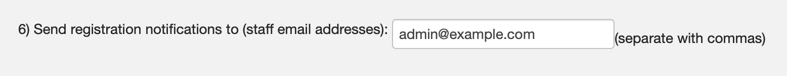 On step 6, you'll have the opportunity to add emails for those you want to be notified every time someone registers for an event. You can add as many emails as you'd like separating them out with a comma.