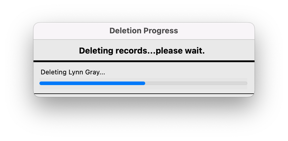 - You'll then see a window appear that will show the process of these records being deleted.