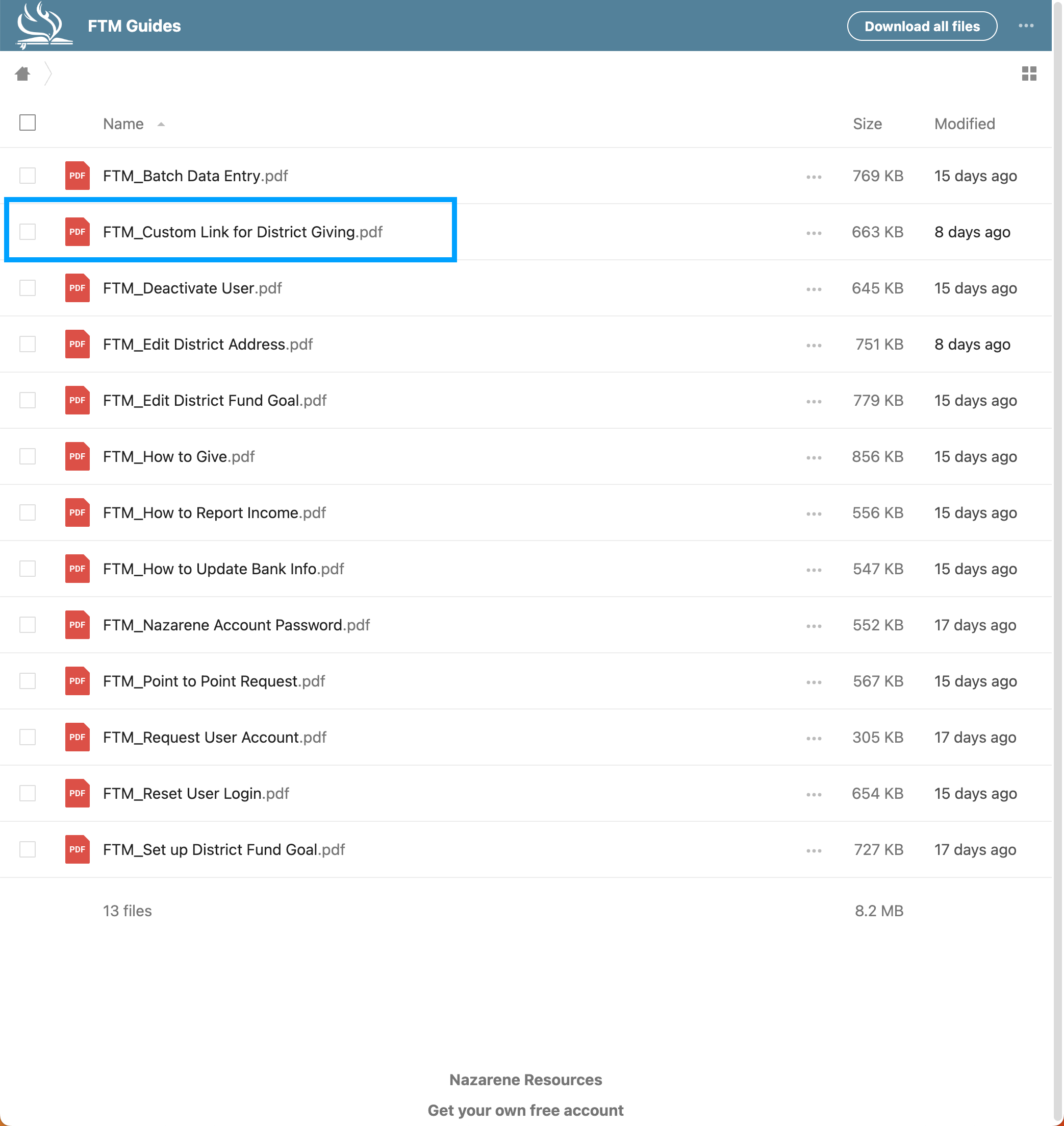 Click on the PDF named, FTM_Custom Link for District Giving.pdf