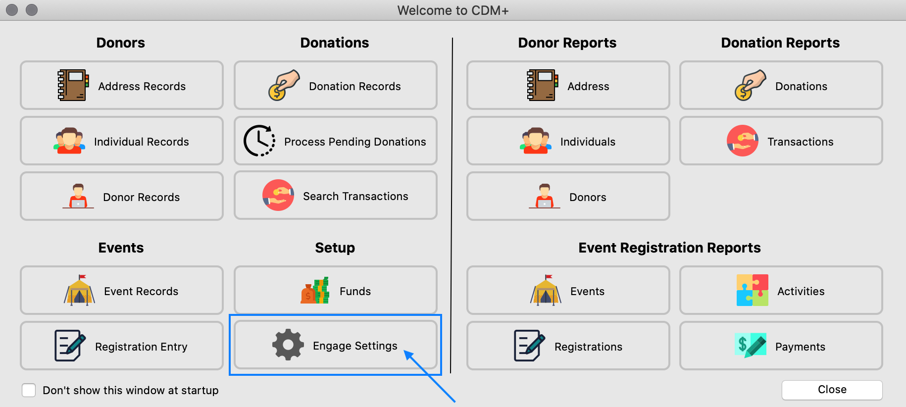 Go back to the Welcome to CDM+ window and click Engage Settings.