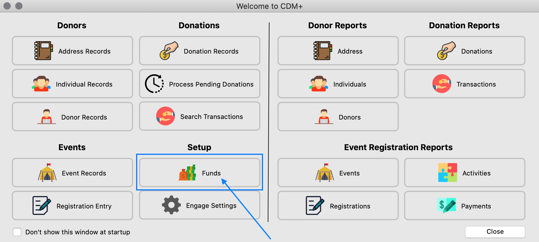 Sign into CDM+ and on the Welcome to CDM+ window, click Funds.