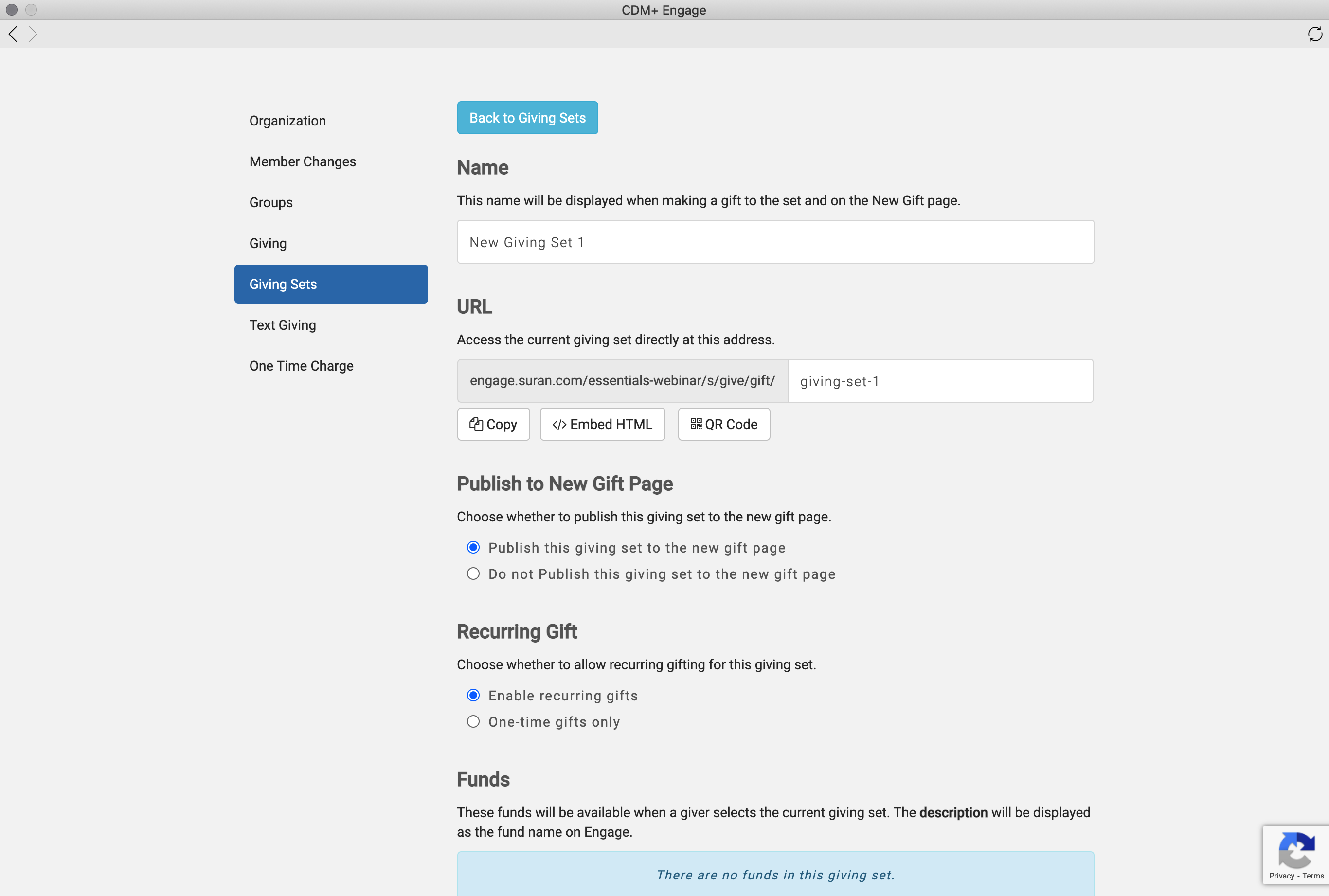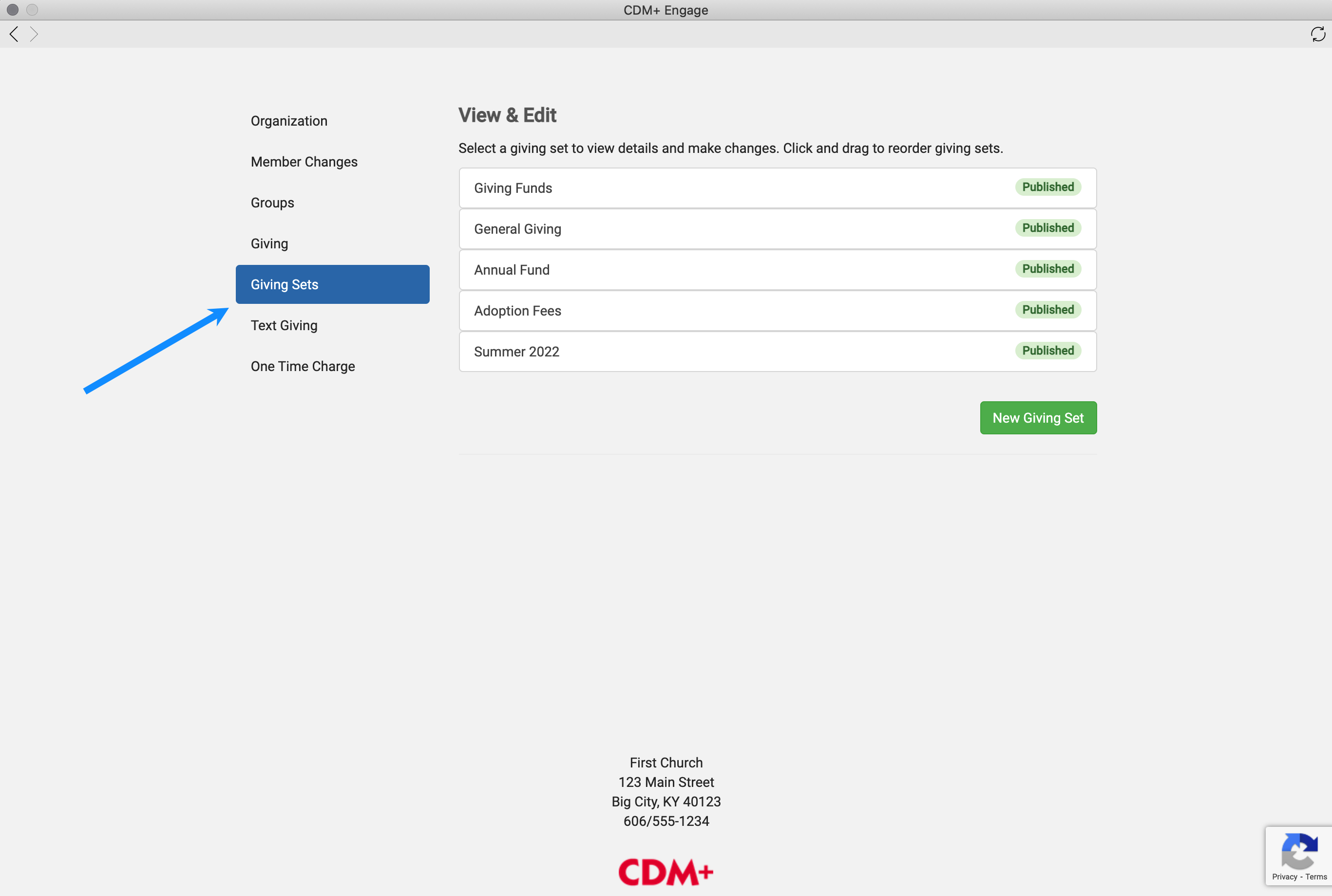 Click Giving Sets on the sidebar menu, then click New Giving Sets.