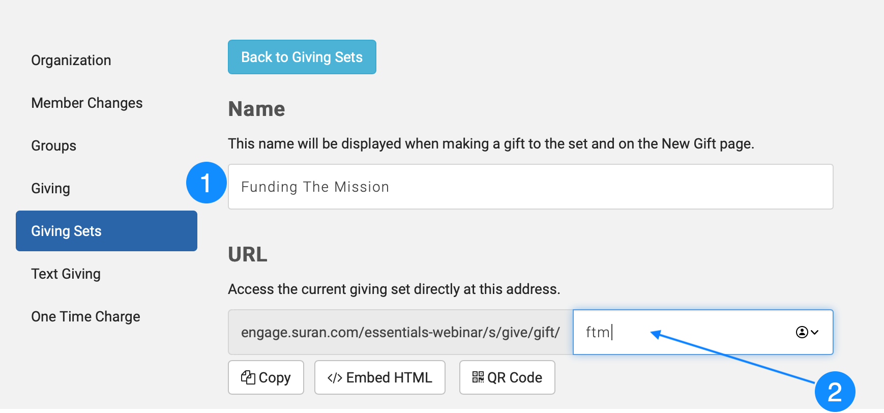 A new window will open - see the steps below to add a new giving set, and customize it.